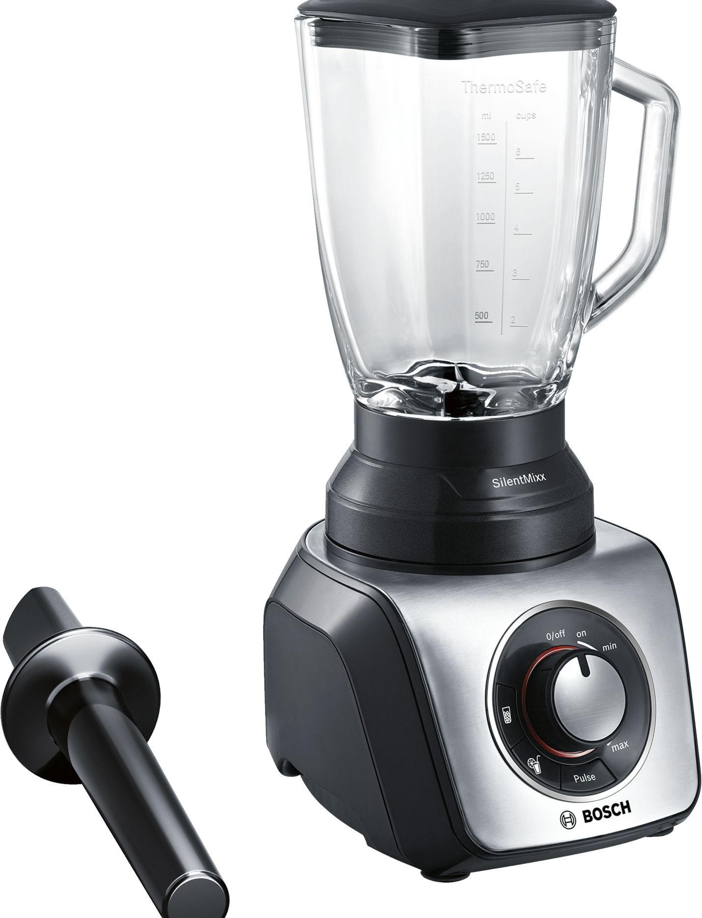 Блендер Bosch MMB65G5M с системой фиксации Easy KlickKnife позволяет легко и безопасно извлечь и вымыть нож. Лезвия расположены на разных уровнях, что обеспечивает равномерное смешивание и измельчение продуктов. Термостойкий стеклянный кувшин подходит для приготовления горячих супов и холодных лимонадов или смузи. Проталкиватель в комплекте обеспечит безопасную эксплуатацию во время работы прибора.