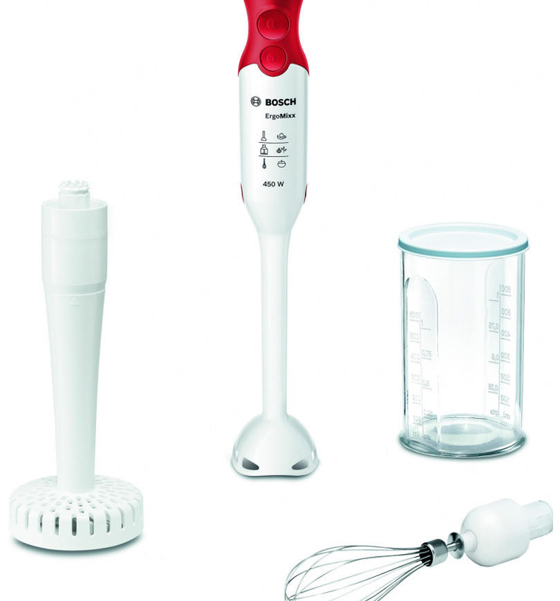 Погружной блендер MSM 64035 в белом исполнении с красными элементами — это эстетика, стиль и функциональность. Небольшой размер позволяет комфортно работать с прибором. Эргономичный корпус и антискользящее покрытие обеспечивают надежный хват. Насадка для приготовления картофельного пюре расширяет возможности модели.