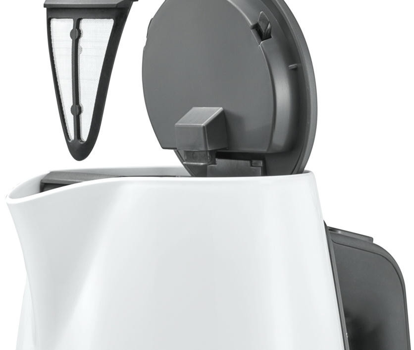 Чайник Bosch TWK 6A011 автоматически прекращает работу при отсутствии воды и при перегреве, гарантируя безопасное использование. Крышка открывается нажатием на кнопку, поэтому наполнить чайник водой можно, держа его в одной руке.
