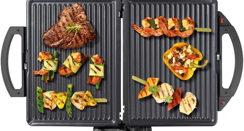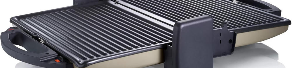 Гриль Bosch TFB3302V — компактная модель мощностью 1800 Вт. Съемные алюминиевые пластины быстро нагреваются, они оснащены стоком для жира. Подвижная верхняя панель позволяет поджаривать толстые куски с двух сторон. Можно также размораживать и подогревать.