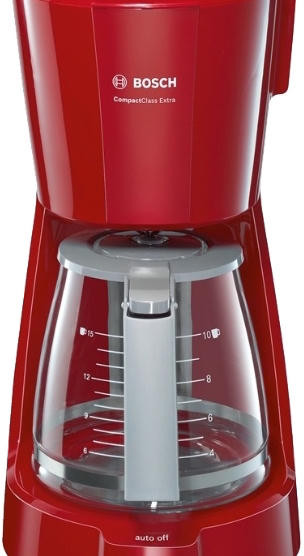 Капельная кофеварка Bosch TKA 3A034 в красном цвете оснащена платформой для подогрева, что позволяет наливать кофе в теплую посуду, чтобы сохранить его вкус и аромат, или поддерживать температуру напитка в стеклянной емкости.
