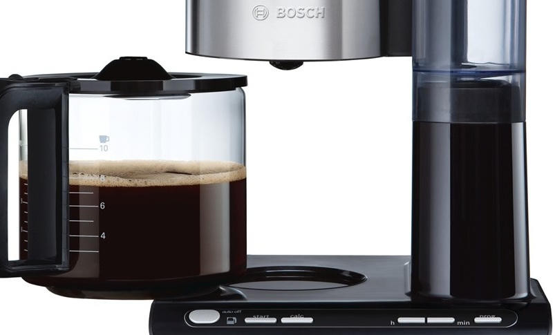 Кофеварка BOSCH TKA 8633 — модель черного цвета с элементами нержавеющей стали. Такая модель занимает одно из первых мест по популярности среди электрических кофеварок, благодаря компактным размерам, небольшой цене и простоте использования.