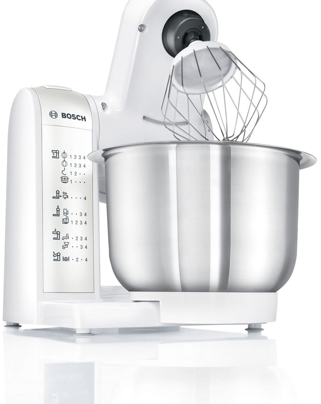 Кухонный комбайн Bosch MUM 4875 — обновленная модель проверенной временем линейки MUM 48. Популярность у пользователей прибор завоевал благодаря удобству электронной панели управления и разнообразию насадок. Кондитерские насадки (венчики, крюк для теста) помогут испечь торты и пирожные. Двусторонняя терка, шинковка сокращают время на приготовление салатов, овощных блюд. Блендер предназначен для смешивания напитков, пюрирования овощей и фруктов, измельчения ягод, фруктов, орехов и кубиков льда. Мясорубка позволит переработать мясо для котлет, колбасок, кебабов.
