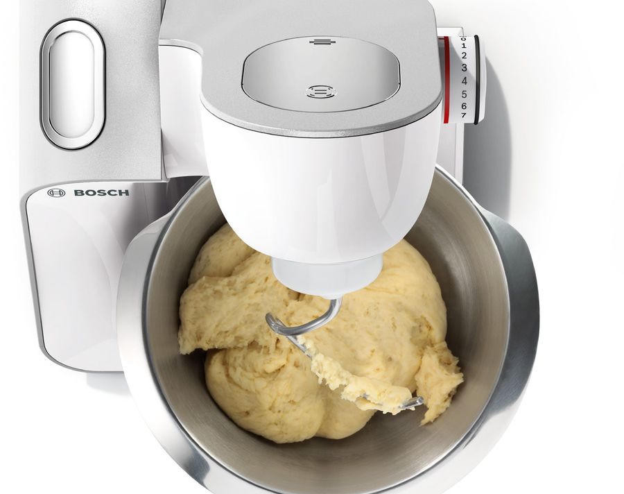 Кухонный комбайн MUM5824C отличается высокой мощностью, долговечностью использования и быстрым достижением результата. Прибор оборудован большой чашей из нержавеющей стали со специальной внутренней формой для оптимального приготовления теста(до 2,7 кг теста для тортов или 1,9 кг дрожжевого теста). Венчики вращаются сразу в трех направлениях по планетарному принципу — никаких остатков на дне и стенках чаши и домешивания руками. Кондитерские насадки останавливаются в положении, удобном для их извлечения. Автоматическое поднятие рычага одним нажатием кнопки позволит легко сменить венчик на крюк и наоборот.
