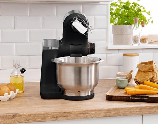 BOSCH MUMS2VM00 оснащён мотором мощностью 900 Вт. Все металлические насадки можно мыть в посудомоечной машине, что значительно облегчает уход. Чаша выполнена из стали повышенной прочности, а корпус из пластика. Емкость ее составляет 3,8 л. Шнур имеет специальный отсек для хранения и не будет мешаться на столе. Электронное управление осуществляется по средствам кнопок и поворотных переключателей, точность и надежность которых доказана временем. Комбайн оснащен 3 насадками: для теста, венчик и крюк. Дополнительно можно укомплектовать его различными принадлежностями по мере необходимости. Гарантия от производителя составляет 12 месяцев.