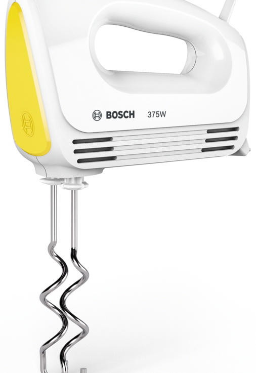 Миксер Bosch MFQ 2210Y оборудован двумя типами насадок: венчиками для взбивания и крюками для замешивания теста. Возможно выбрать одну из четырех скоростей для разного типа блюд, а импульсный режим позволяет приготовить соусы, кремы, жидкое и плотное тесто.