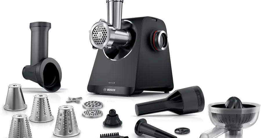 При проектировании особое внимание уделено эргономике: удобные органы управления позволяют легко переключать скорости, а расположение насадок и лотка обеспечивает свободный доступ без лишних наклонов. Черный оттенок корпуса придает прибору сдержанную солидность, хорошо сочетающуюся с различными стилями интерьера, а пластиковые поверхности сохраняют презентабельный вид при регулярной чистке. Универсальность конструкции выгодно отличает модель: машина одинаково уверенно справляется с мясом для котлет, фаршем для рулетов и наполнением для колбас, а режимы и дополнительные аксесуары позволяют адаптировать процесс под рецепты с разными требованиями к текстуре.