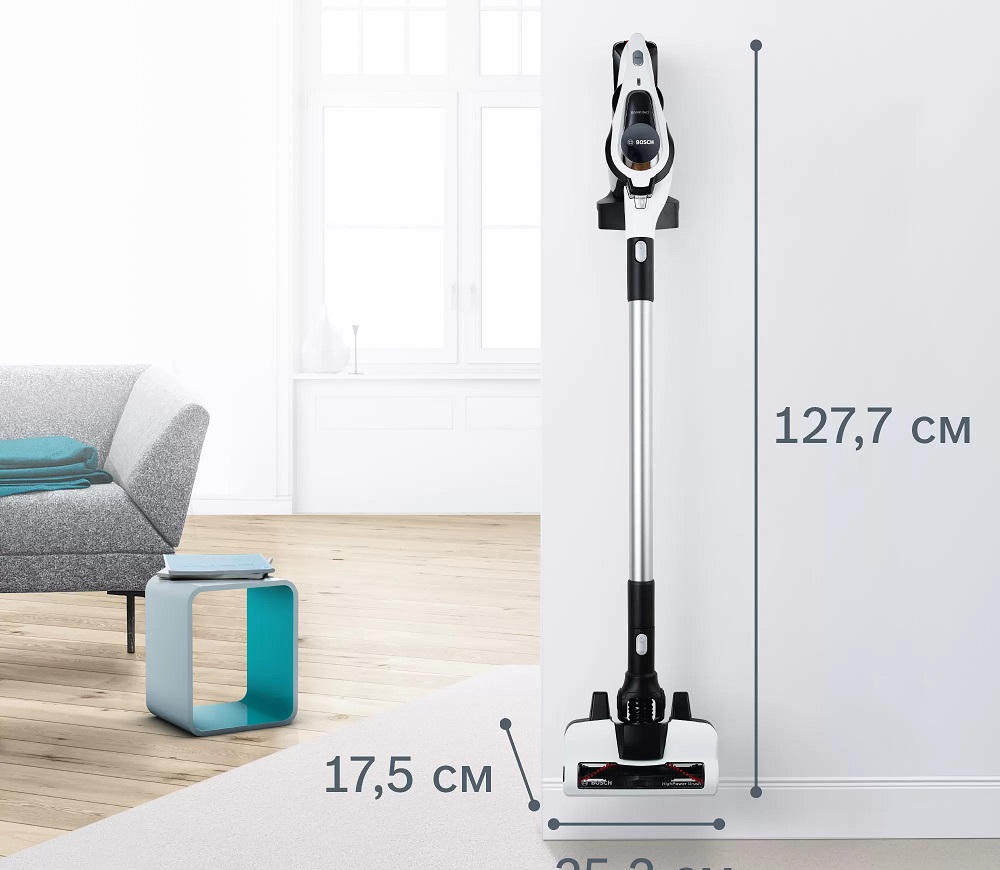 Аккумуляторный пылесос Bosch BCS81EXC хорошо послужит для уборки полов, а сменные насадки и возможность использовать прибор как портативное устройство позволят удалять пыль с других поверхностей. Благодаря функции Rotation Clean фильтр контейнера легко очищается, его даже не надо мыть. Устройство не будет занимать много места, ведь для него предусмотрена док-станция, в которой удобно хранить сам прибор и аксессуары к нему.