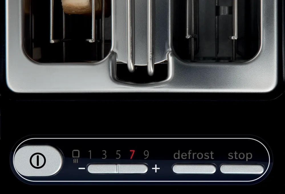 В основе нагрева лежат кварцевые элементы MirrorHeating, обеспечивающие быстрый разогрев при мощности 860 Вт, что сокращает время приготовления и равномерно подрумянивает хлеб. Электронная система управления с наглядной индикацией режимов позволяет легко выбирать оптимальную степень поджаривания, регулируемую по вкусу, а функции Stop, размораживания и подогрева расширяют сценарии использования: от быстрого перекуса до подготовки тёплых булочек. Автоматическое центрирование ломтиков гарантирует равномерную прожарку по всей поверхности, а плавный подъём облегчает извлечение горячих изделий без риска ожога.