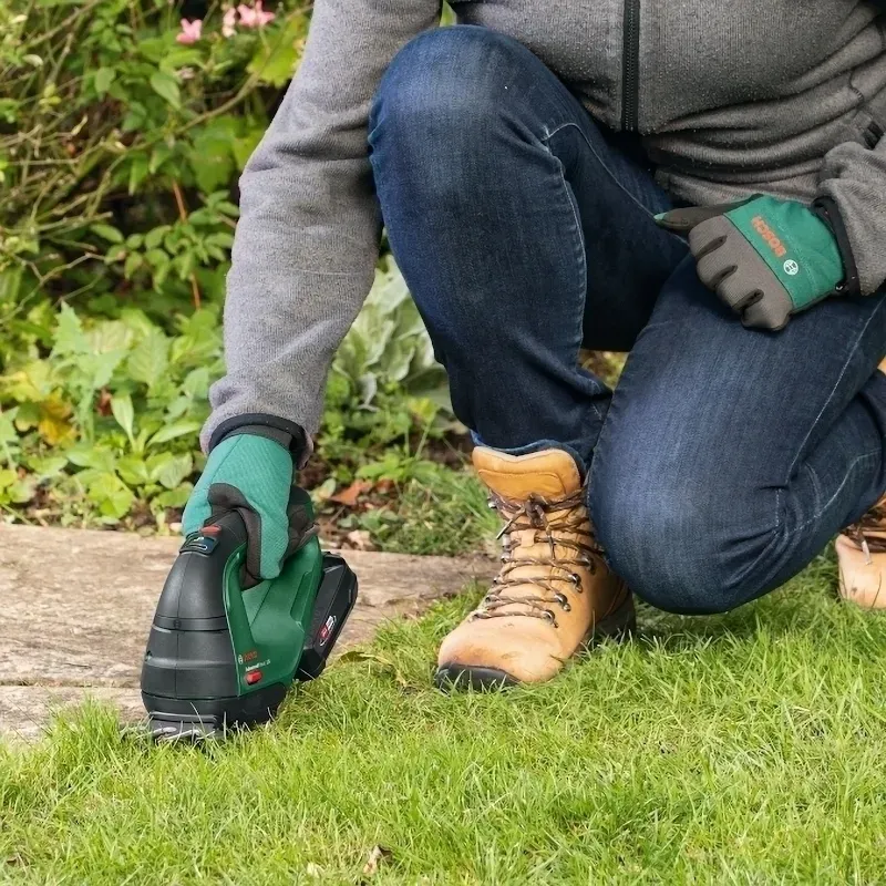 Аккумуляторные ножницы Bosch Advanced Shear 18V-10 комфортно держать в руках благодаря сбалансированному корпусу и нескользящей рукоятке. Универсальный инструмент поддерживает применение двух ножей — для травы и кустарников. Замена оснастки выполняется одним движением, что позволяет быстро переходить от одной задачи к другой. Например: от подравнивания кромок газона к стрижке живой изгороди. Устройство работает от Li-Ion аккумулятора 18 В емкостью 2 Ач, совместимого с другими аккумуляторными инструментами Bosch.