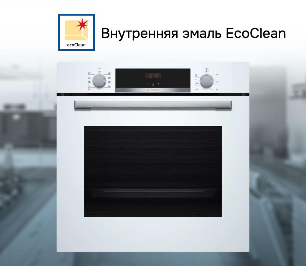 Духовой шкаф Bosch HBA534BW0 — это электрическая независимая модель. Ее внутренний объем составляет 71 литр, благодаря чему есть возможность запекать большие блюда. Она оформлена в белом цвете, благодаря чему отлично впишется в любой современный кухонный интерьер. Управление осуществляется посредством использования сенсорных кнопок, а также поворота переключателей. Благодаря многофункциональным часам Easy Clock можно с легкостью отслеживать время до окончания работы одной из программ.