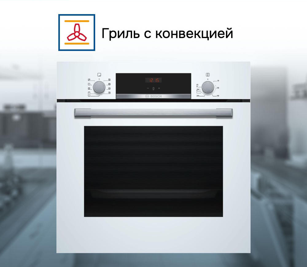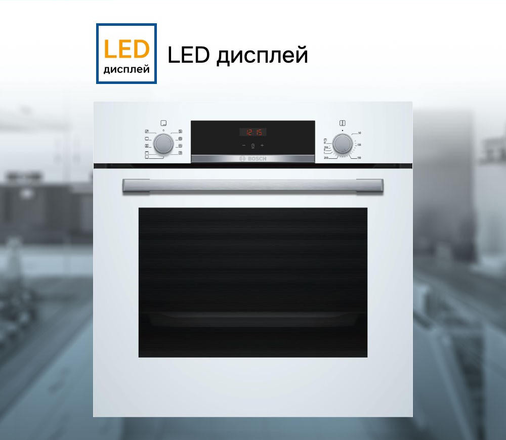 Духовой шкаф Bosch HBF534EW0R — это электрическая независимая модель из линейки Serie | 4. Ее внутренний объем составляет 66 литров, благодаря чему в ней можно запекать сразу несколько блюд, либо одно большое. Она выполнена в белом цвете, благодаря чему хорошо вписывается в различные виды современного кухонного интерьера. Управление осуществляется с помощью сенсорных кнопок, а также поворотных и утапливаемых переключателей. LED-дисплей устойчив к высоким температурам, а также имеет качественное изображение под любым углом. Благодаря многофункциональным часам Easy Clock можно с легкостью отслеживать время до окончания работы одной из программ.