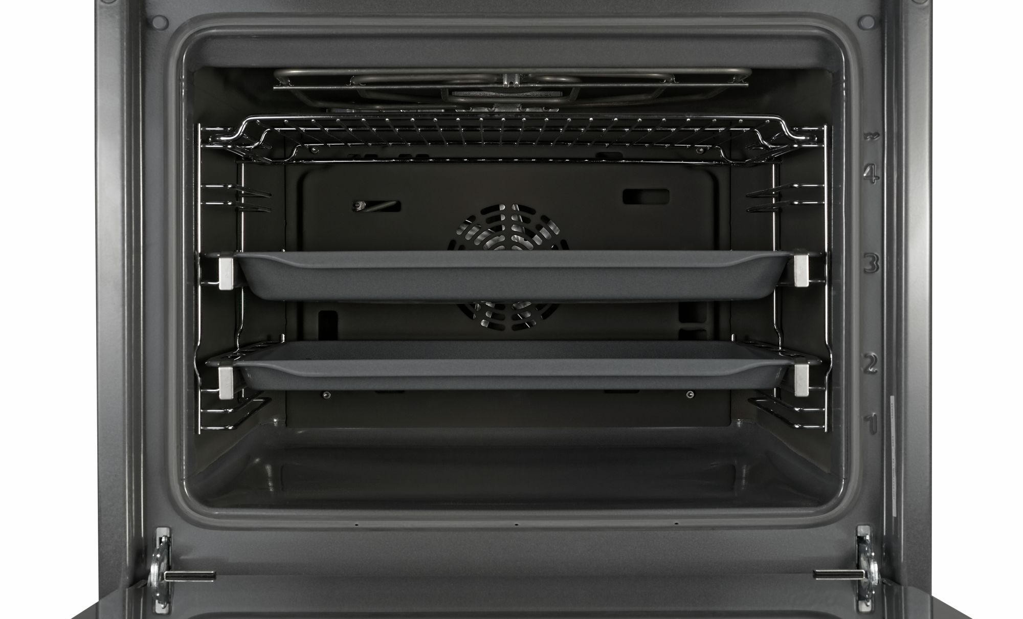 Чтобы не тратить много времени на чистку духовки от жировых отложений, все внутренние панели в Бош HBF554YB0R изготовлены из пористой многослойной керамики EcoClean. Она впитывает в себя жир, а затем при нагревании расщепляет его на экологически безопасные составляющие – уголь и воду. Таким образом, поверхность самоочищается без вашего участия сразу же во время работы устройства.