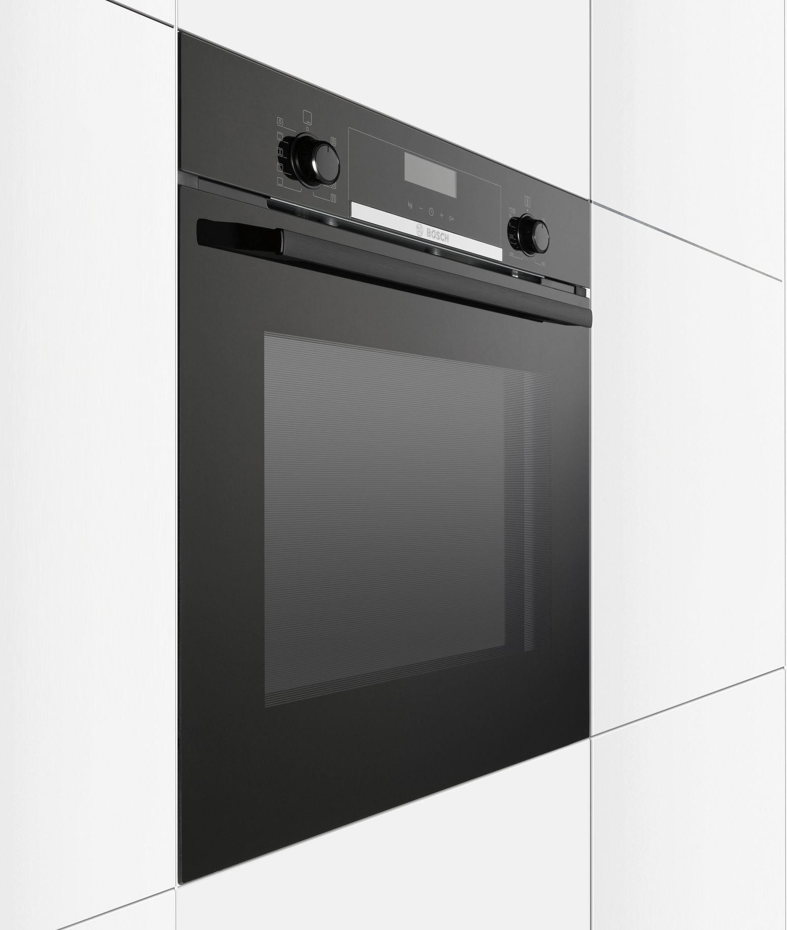 Как и все духовки из линейки Serie 6, Бош HBG517BB0R оборудована грилем, двумя ТЭНами и вентилятором для обдува горячим воздухом. Отдельно для выпечки предусмотрен режим пиццы. Опция «Быстрый нагрев» подразумевает не нагрев самого блюда, а прогрев духовки перед началом приготовления.