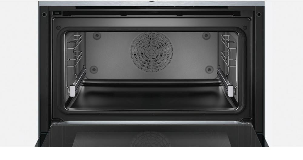 Компактный паровой духовой шкаф Bosch CSG656RS7 выполнен в цвете нержавеющей стали. Имеет 14 режимов нагрева, среди которых — гриль, конвекция, сушка и размораживание. На одном из трёх уровней установки противней предусмотрены телескопические направляющие со Stop-функцией и полным выдвижением. Дверца имеет три стекла и оснащена амортизатором SoftClose, который обеспечивает ей плавное закрытие. Наружное стекло нагревается не более чем до 40_С, что сводит к минимуму риск ожогов во время работы духового шкафа.