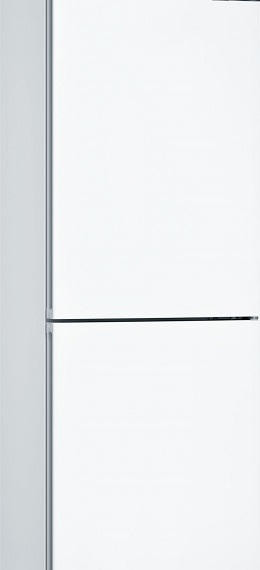 Двухкамерный холодильник Bosch KGN36NW21R — модель из линейки Serie | 4, выполненная в белом цвете. Модель имеет 2 отделения, общий полезный объем составляет 324 л. Холодильная камера расположена сверху и имеет полезный объем 279 л, в то время как морозильник располагается снизу и имеет полезный объем 87 л. Габариты прибора оптимальны — 186x60x66 см (В х Ш х Г): можно установить плотно к стенам и мебели, избежав зазоров сзади и по бокам. Двери открываются на 90°, позволяя полностью выдвигать полки и ящики.