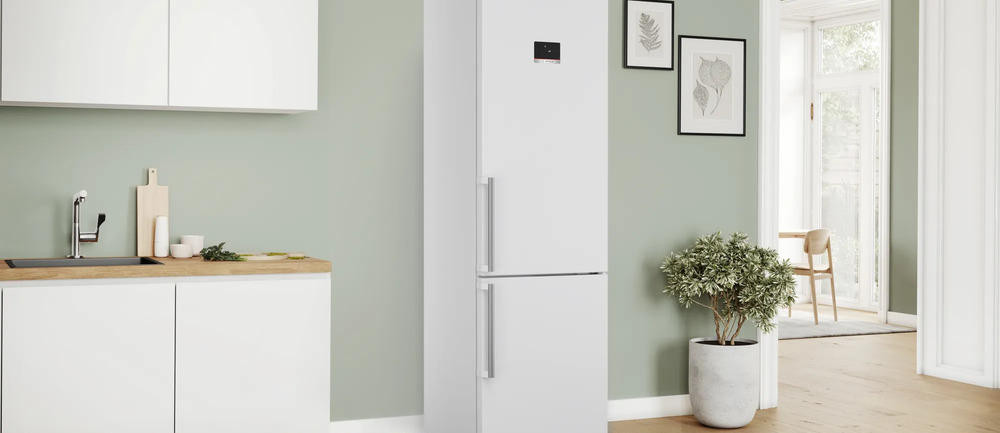 Двухкамерный холодильник Bosch KGN397WCT - это высокотехнологичное устройство, которое сочетает в себе функциональность, элегантный дизайн и надежность. Общий полезный объем 363 литра, что делает его идеальным выбором для больших семей. Электронное управление с сенсорными элементами и дисплеем делает использование холодильника удобным и простым. Также он оснащен функцией Home Connect, которая позволяет управлять устройством дистанционно с помощью смартфона или планшета. Система охлаждения No Frost обеспечивает равномерное распределение холода внутри холодильника, предотвращая образование льда и инея. Автоматическая система размораживания упрощает обслуживание и эксплуатацию. Система MultiAirflow обеспечивает оптимальное распределение температуры, сохраняя продукты свежими дольше.