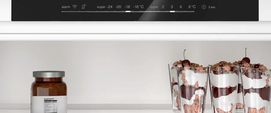 Морозильная камера реализована по технологии NoFrost, полностью исключающей образование инея внутри, и также оснащен автоматической системой размораживания. Функция SuperFreezing (суперзамораживание) оперативно снижает температуру при загрузке свежих продуктов, а мощность замораживания 9.5 кг/24 ч обеспечивает быстрое превращение продуктов в безопасные для длительного хранения порции. При отключении питания автономное сохранение холода достигает 13 часов, что даёт дополнительную защиту содержимого.