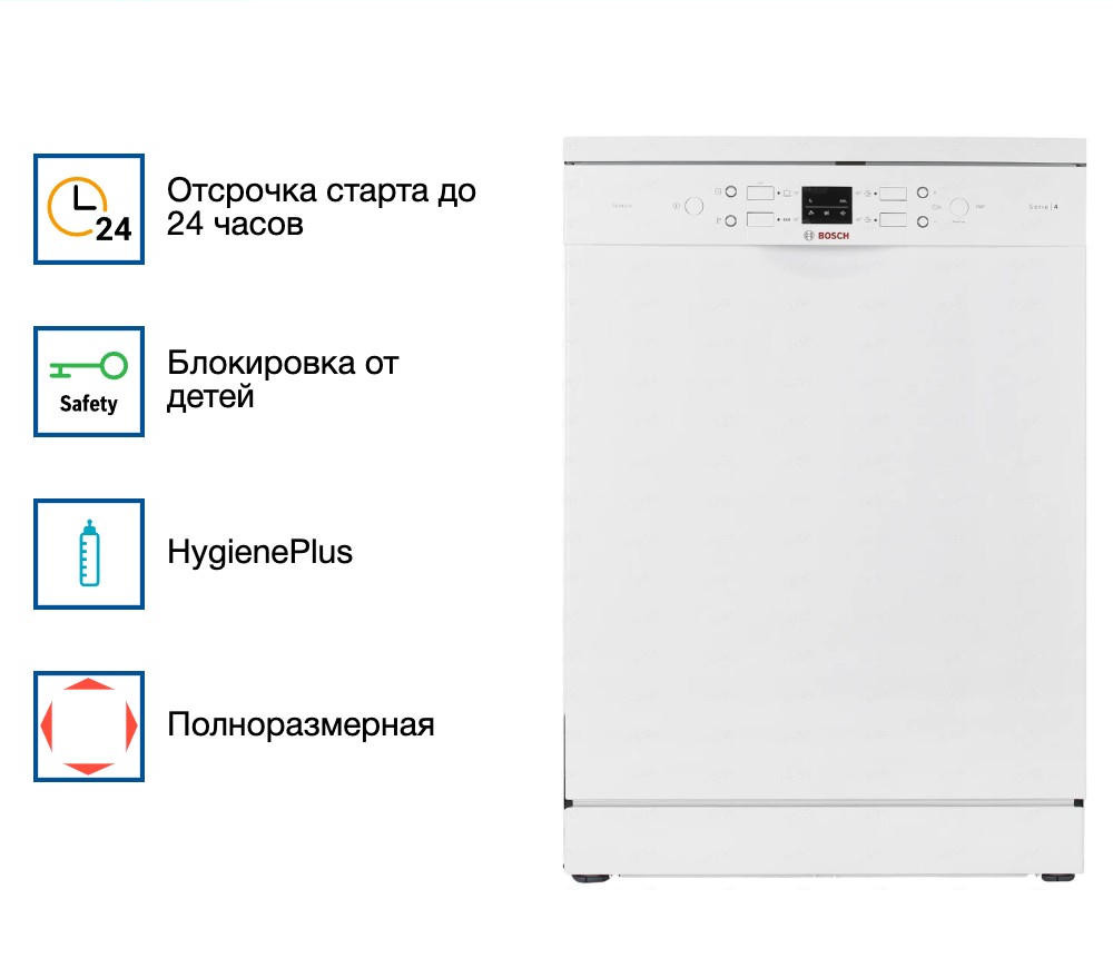 Посудомоечная машина Bosch SMS44DW01T характеризуется экономичным потреблением электричества и воды. За счет этого можно снизить затраты на оплату коммунальных услуг. Устройство осуществляет эффективное удаление жира, пригоревшей пищи и других сложных загрязнений с тарелок, столовых приборов, кастрюль и кружек. При необходимости включение модели можно перенести на удобное для пользователя время. Это обеспечивается посредством функции «Отсрочка запуска». Благодаря сушке конденсационного типа посуду не требуется протирать полотенцем после очищения. Выбор необходимых функций или установка температурного режима осуществляется посредством электронной панели управления. Устройство создает незначительный уровень шума в процессе работы, что обеспечивает дополнительное удобство при повседневной эксплуатации. Высоту положения корзины можно изменить благодаря специальной системе крепления. Это позволяет убирать в камеру даже крупные кастрюли, сковородки и другую посуду.