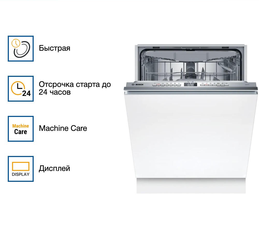 Встраиваемая посудомоечная машина Bosch SMV4HVS03E — это современное решение для тех, кто ценит комфорт, качество и стиль в своем доме. Устройство изготовлено в Евросоюзе и обладает гарантией на 12 месяцев. Представленная модель относится к серии Serie | 4, которая славится своим надежным и функциональным оборудованием. Устройство обладает широким спектром функций и особенностей, которые делают его использование максимально удобным и эффективным.