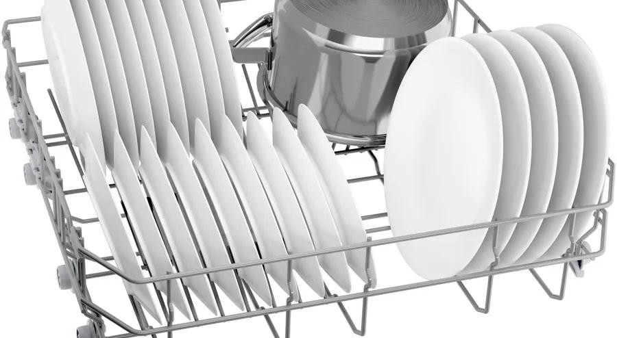 Встраиваемая посудомоечная машина Bosch SMV4HVX07E оснащена тримя корзинами, включая верхний уровень с регулировкой Rackmatic-3, позволяют быстро адаптировать положение для различных приборов и оптимизировать размещение при смене загрузки. В каждом ярусе предусмотрены складные направляющие для тарелок, две в верхней корзине и в нижней, что облегчает укладку нестандартной посуды и значительно повышает рабочую гибкость. Внутренний резервуар сочетает нержавеющую сталь и пластик, что гарантирует прочность и стойкость к воздействию моющих средств, а также сокращает вероятность коррозии; производитель подтверждает долговечность отдельной гарантией на десять лет от сквозной коррозии камеры.