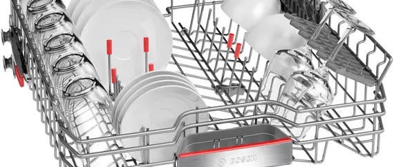 Полновстраиваемая посудомоечная машина Bosch SMV66TX01R рассчитана на большую семью и вмещает 14 комплектов посуды. Функция HygienePlus в конце мойки ополаскивает посуду водой 70 градусов. Это гарантирует уничтожение до 99% бактерий — обеззараживайте банки для консервирования, бутылочки для детского питания и другие емкости. Благодаря тому, что сушка выполняется за счет теплообменника, хрупкая стеклянная посуда будет защищена от температурного шока и не испортится. Проекция дисплея TimeLight отображает световым лучом ход выполнения программы и выбранные настройки — просто посмотрите на пол! За счет встроенного замка ServoSchloss дверь закроется сама, если угол открытия меньше 10 градусов.