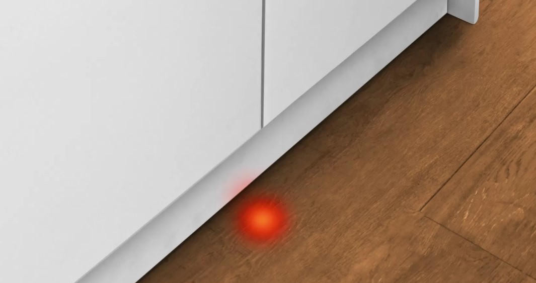 Луч Info Light светит на пол, когда программа выполняется. Если открыть дверь до завершения мойки, процесс сушки будет нарушен, так как внутрь камеры попадет холодный воздух. Луч Info Light погаснет, если программа завершена. Таким образом вы точно знаете, что сушка посуды выполнена в полном объеме и не откроете дверцу раньше времени.