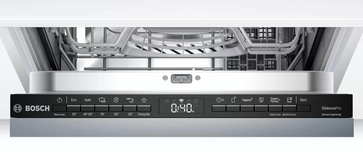 Посудомоечная машина Bosch SPV4HKX1DR имеет дистанционное управление. Получайте уведомления на смартфон и включайте нужные настройки легким прикосновением. Интенсивная мойка удаляет сильно пригоревшие остатки пищи и подходит для кастрюль и столовых приборов. С технологией Home Connect вы можете настраивать и запускать мойку прямо со смартфона. Завершилась программа или нужно залить ополаскиватель? Активируйте отправку уведомлений, чтобы всегда знать, чем занимается ваше устройство.