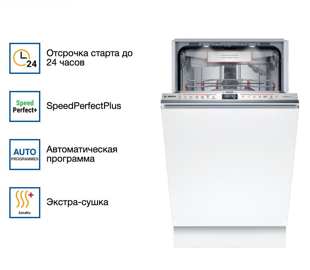 Встраиваемая посудомоечная машина Bosch SPV6ZMX17E обладает элегантным дизайном и компактными размерами, что позволяет ей гармонично вписаться в любой интерьер кухни. Изготовленная из нержавеющей стали, она не только привлекательно выглядит, но и обеспечивает долгий срок службы. Модель оснащена инверторным двигателем EcoSilence Drive, который обеспечивает тихую и эффективную работу. С его помощью машина способна обслуживать до 10 комплектов посуды, что делает ее идеальным выбором для средних и больших семей.