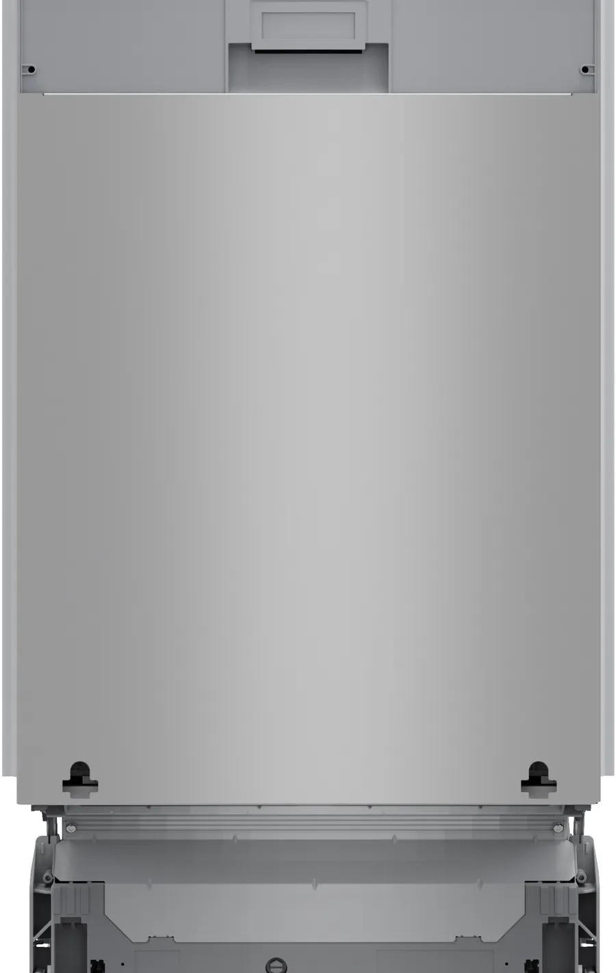 Управление сосредоточено на закрытой панели с информативным дисплеем и удобными сенсорными кнопками — это позволяет поддерживать чистый фасад без выступающих элементов. Для индикации состояния используются встроенные световые сигналы наличия ополаскивателя и соли, а также отображение времени до окончания программы; вместо привычного проекционного индикатора применён лазерный луч Time light. Жёсткое крепление фасада обеспечивает плотную интеграцию с дверью шкафа, а задние ножки регулируются спереди, облегчая монтаж по уровню.