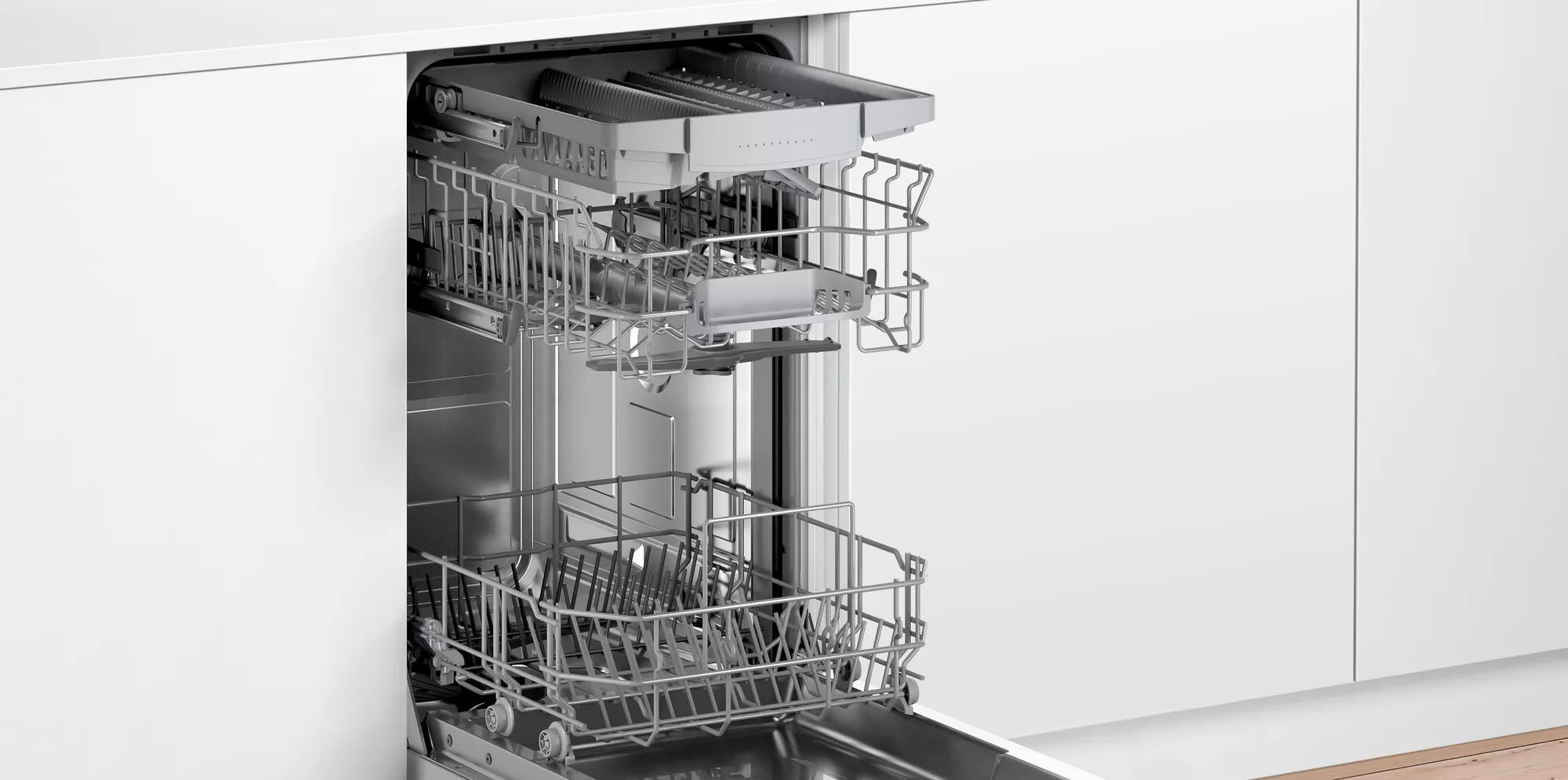 Посудомоечная машина Bosch SRV2IMY2ER включает 4 программы. Система AquaStop: круглосуточная защита от любых протечек, как внутри прибора, так и в случае разрыва заливного шланга. Третий уровень загрузки VarioDrawer: Больше пространства для посуды.