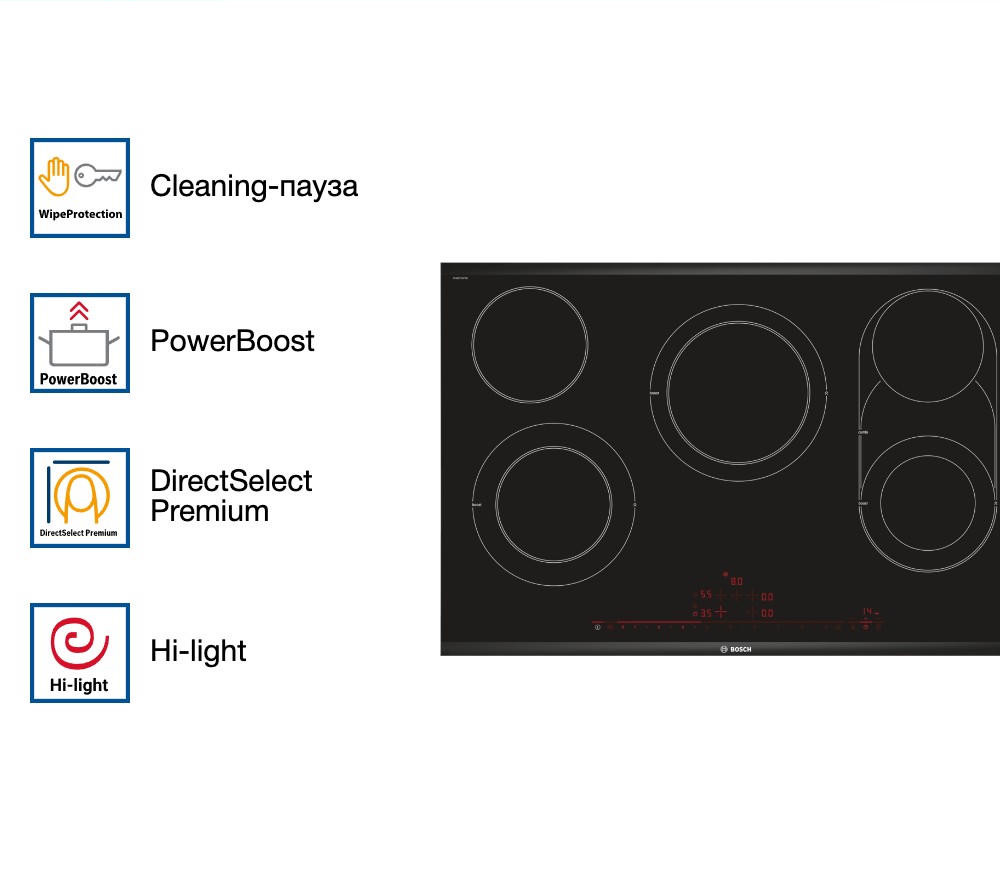 - Функция PowerBoost для быстрого нагрева и экономии времени.