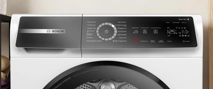 Машина оснащена LED дисплеем, который отображает все необходимые данные о процессе сушки. Специальные индикаторы информируют о заполнении ворсового фильтра и контейнера для конденсата, что позволяет своевременно проводить необходимую чистку и обслуживание. Сушильная машина Bosch WQB245B40 обладает вместительным барабаном из нержавеющей стали объемом 112 литров, что позволяет сушить до 9 кг белья за один цикл. Система AutoDry автоматически определяет оптимальное время сушки, в зависимости от типа и веса белья, что обеспечивает идеальный результат и экономит энергию. Особенностью данной модели является наличие 14 программ сушки, включая специальные программы для сушки хлопка, синтетики, рубашек, пуховиков, спортивной одежды, тонкого белья, смешанного белья, полотенец и деликатного белья. Также есть возможность отложенного старта до 24 часов.