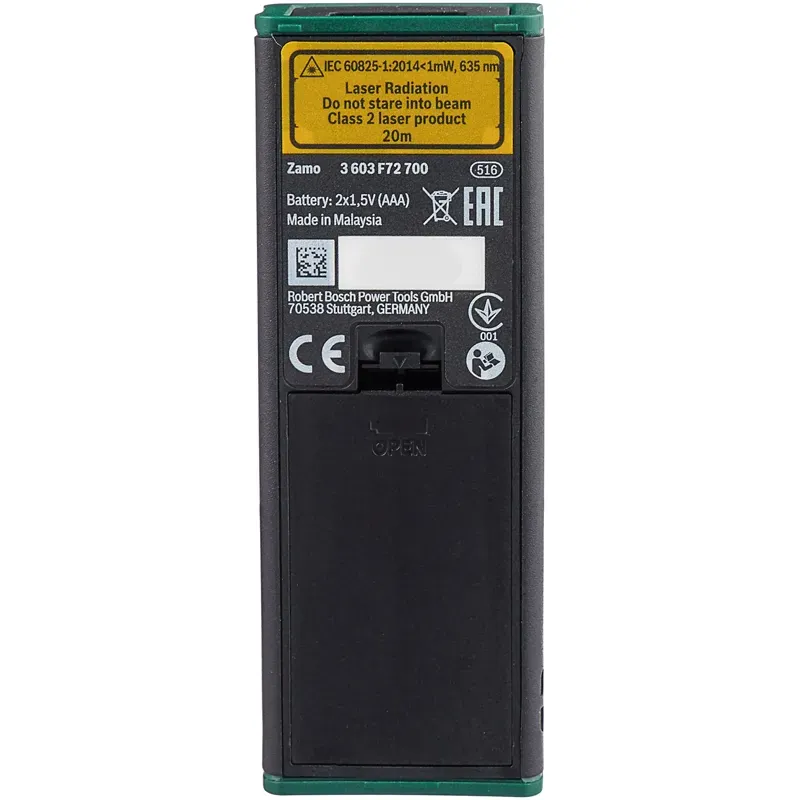 Вся информация отображается на компактном дисплее. На экране отображается текущий и предыдущий результат измерения. По двойному нажатию на основную клавишу, прибор вычисляет площадь помещения. Если необходимо провести серию измерений, то достаточно зажать кнопку.Замеры осуществляются на расстоянии от 15 см до 20 м с точностью до 3 мм. В качестве точки отсчета выступает опорная подошва лазерного дальномера Bosch.