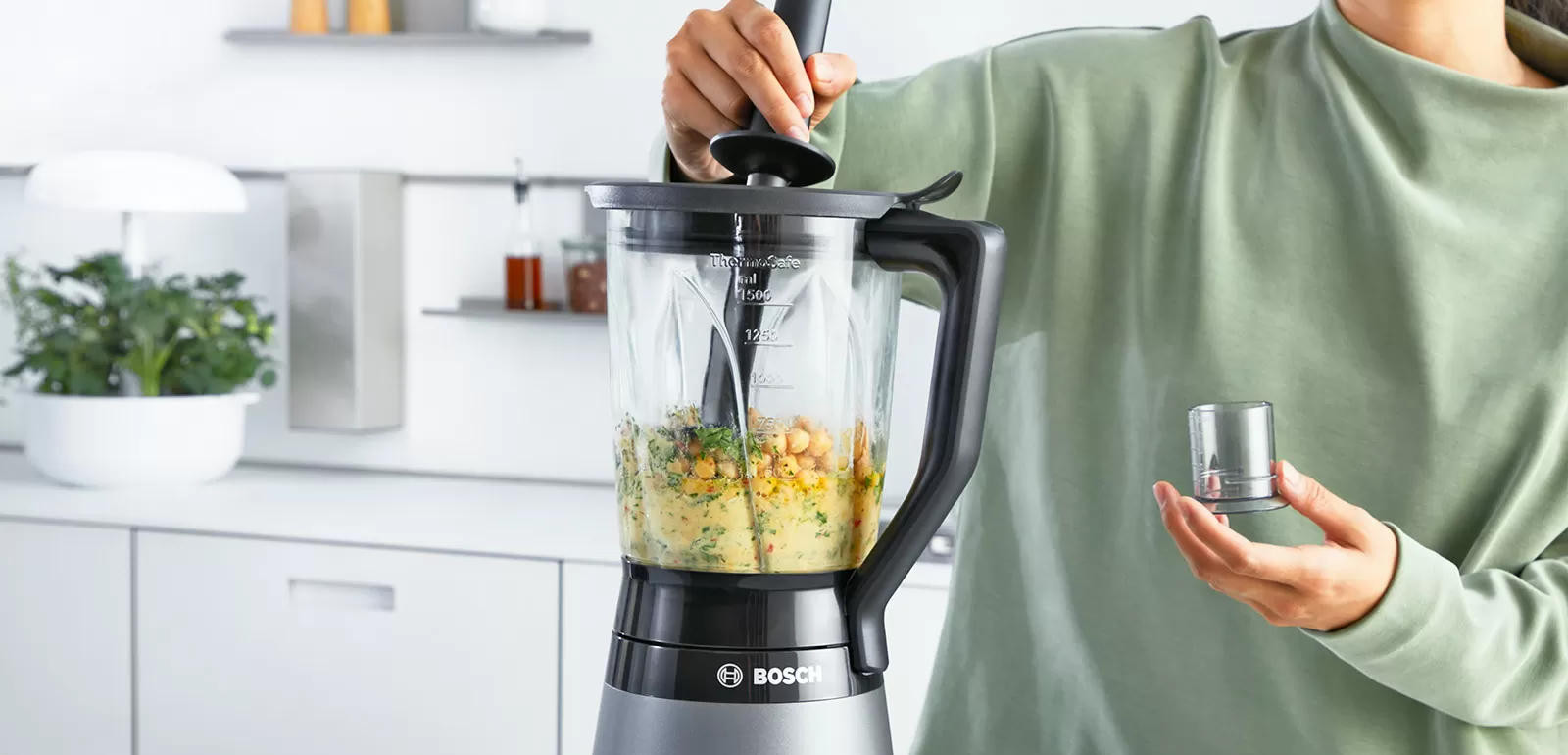 Блендер Bosch MMB6174S оснащен мощным мотором, который позволяет готовить однородные смузи, коктейли или соусы. Очистка теперь стала еще проще благодаря возможности мыть элементы прибора в посудомоечной машине. В состав изделия входит устойчивый к ударам высококачественный кувшин из тритана. Так же тритан не содержит BPA, BPS или других бисфенолов.