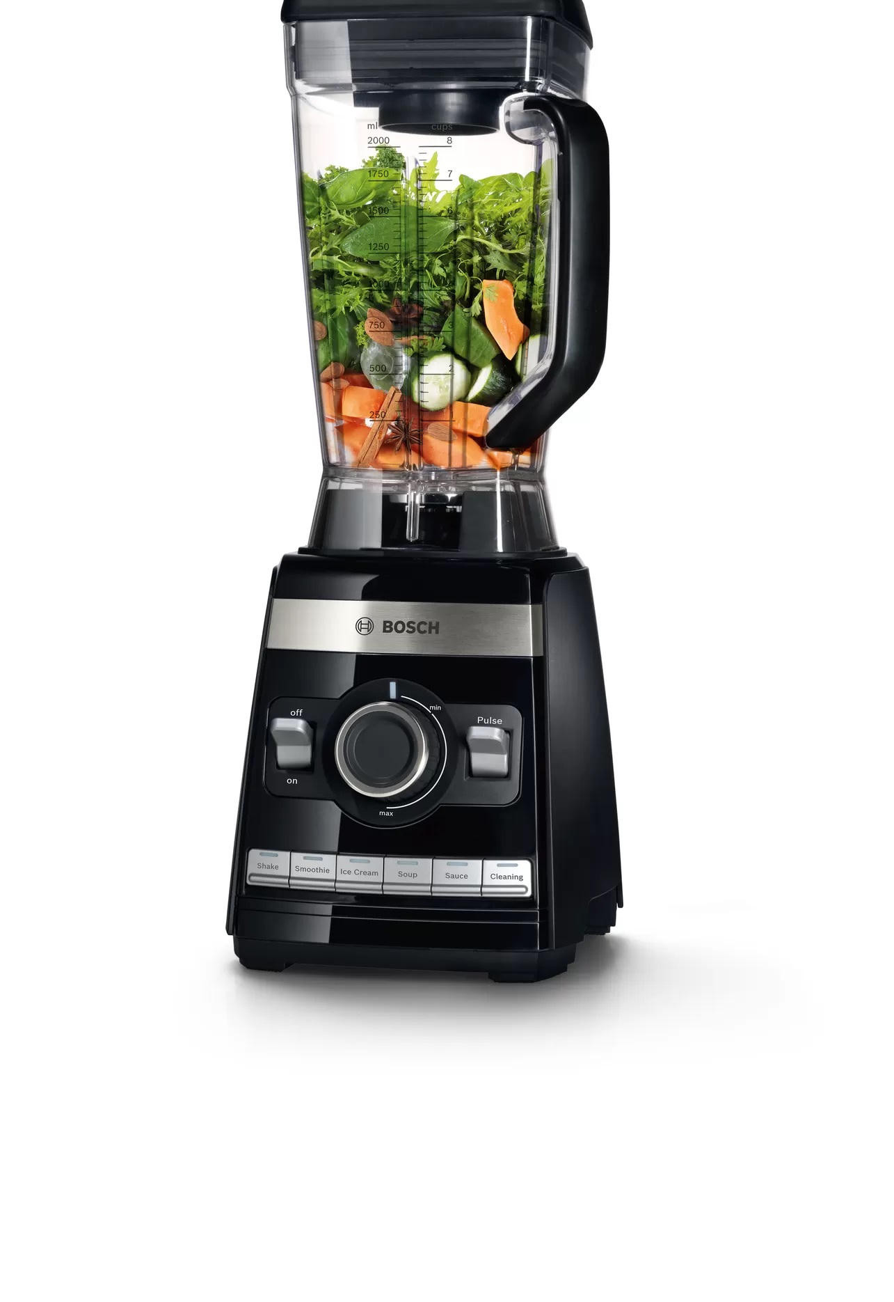Блендер Bosch MMBH6P6B обладает скоростью более 30 000 оборотов в минуту и 3 автоматическими программами для приготовления полезных и вкусных смузи, коктейлей, горячих супов, мороженого и многого другого. Очень мощный 1600-ваттный двигатель и превосходный нож из нержавеющей стали гарантируют, что даже твердые и волокнистые ингредиенты, такие как замороженные ягоды или имбирь, будут превосходно измельчены. Благодаря программе очистки, кувшин блендера очищается практически полностью одним нажатием кнопки.