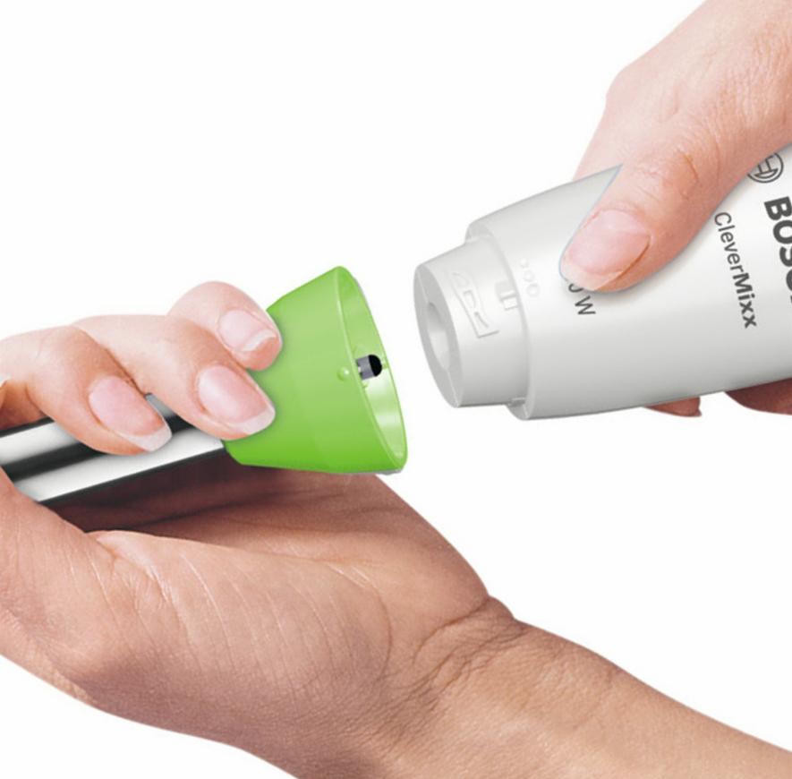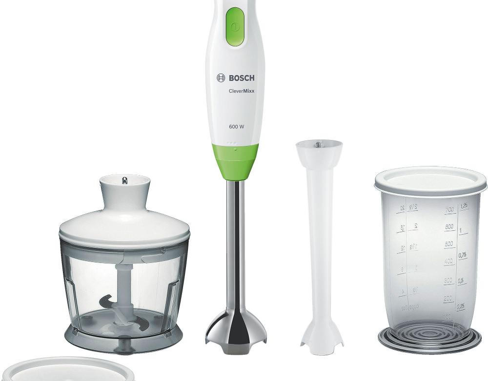 Блендер Bosch MSM 2623G оснащен ножкой из нержавеющей стали с ножом из 4 острейших лезвий, выполненным по инновационной технологии. Универсальный измельчитель в комплекте идеально подойдет для орехов, сыров, шоколада и прочих твердых продуктов. Мерный стакан с крышкой позволит отмерить точное количество напитка и хранить его в холодильнике. Эргономичная форма рукояти сделает эксплуатацию прибора комфортной и безопасной.