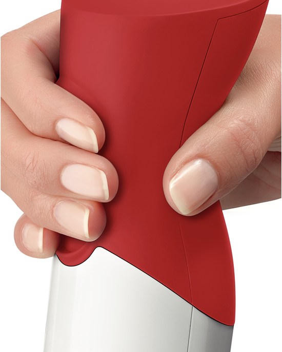 Погружной блендер MSM 64035 в белом исполнении с красными элементами — это эстетика, стиль и функциональность. Небольшой размер позволяет комфортно работать с прибором. Эргономичный корпус и антискользящее покрытие обеспечивают надежный хват. Насадка для приготовления картофельного пюре расширяет возможности модели.