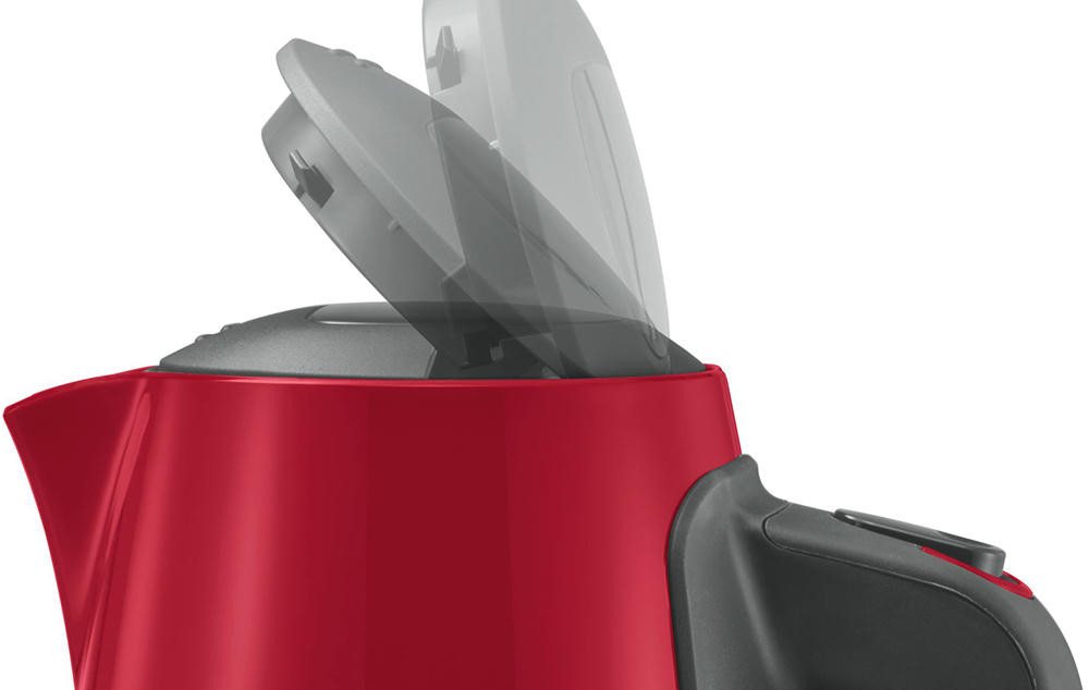 Чайник Bosch TWK 6A014 оснащен крышкой, которая открывается автоматически одним нажатием кнопки. Защита от перегрева автоматически отключает прибор без воды или, если уровень жидкости слишком низкий. Фильтр в носике прибора не даст попасть накипи в чашку.