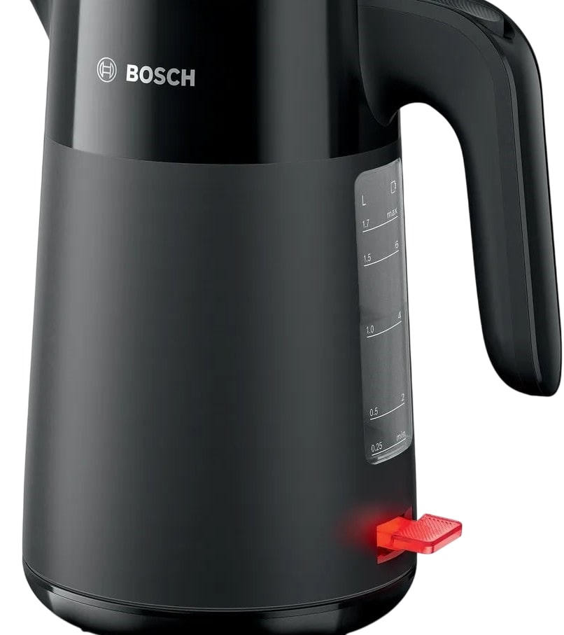 Чайник Bosch TWK2M163 является надежным и функциональным помощником на вашей кухне. Этот электрочайник выполнен в строгом черном цвете, что придает ему современный и стильный вид, способный вписаться в любой интерьер. Корпус изготовлен из качественного пластика, что обеспечивает его долговечность и простоту в уходе. Особенностью данной модели является ее объем в 1.7 литра, что позволяет приготовить большое количество горячего напитка за один раз. Также чайник оснащен закрытой спиралью, что обеспечивает быстрый и равномерный нагрев воды. Чайник оснащен индикатором уровня воды, что позволяет контролировать количество воды внутри устройства и избегать ее перелива. Также есть индикация включения, которая сигнализирует о работе устройства.