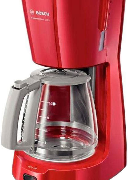 Капельная кофеварка Bosch TKA 3A034 в красном цвете оснащена платформой для подогрева, что позволяет наливать кофе в теплую посуду, чтобы сохранить его вкус и аромат, или поддерживать температуру напитка в стеклянной емкости.