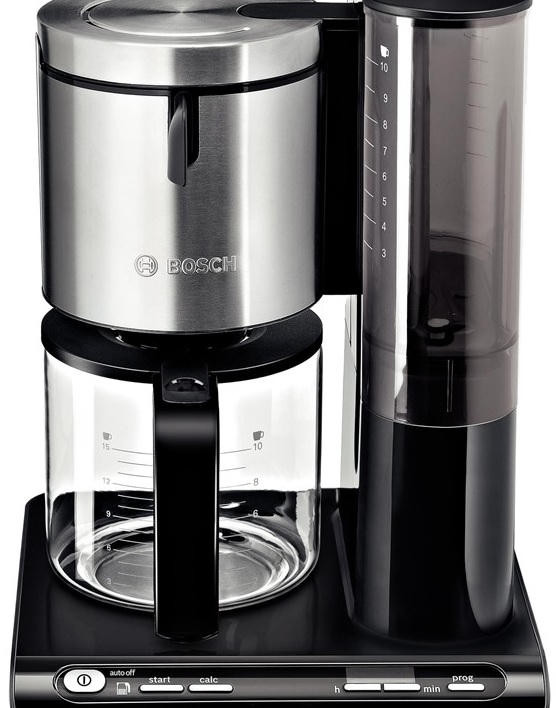 Кофеварка BOSCH TKA 8633 — модель черного цвета с элементами нержавеющей стали. Такая модель занимает одно из первых мест по популярности среди электрических кофеварок, благодаря компактным размерам, небольшой цене и простоте использования.