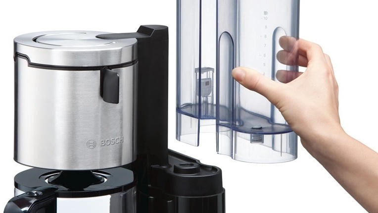 Кофеварка Бош TKA 8633 имеет индикатор уровня, предназначенный для измерения налитой в емкость воды. Такая конструктивная особенность позволяет экономно расходовать время и электроэнергию.
