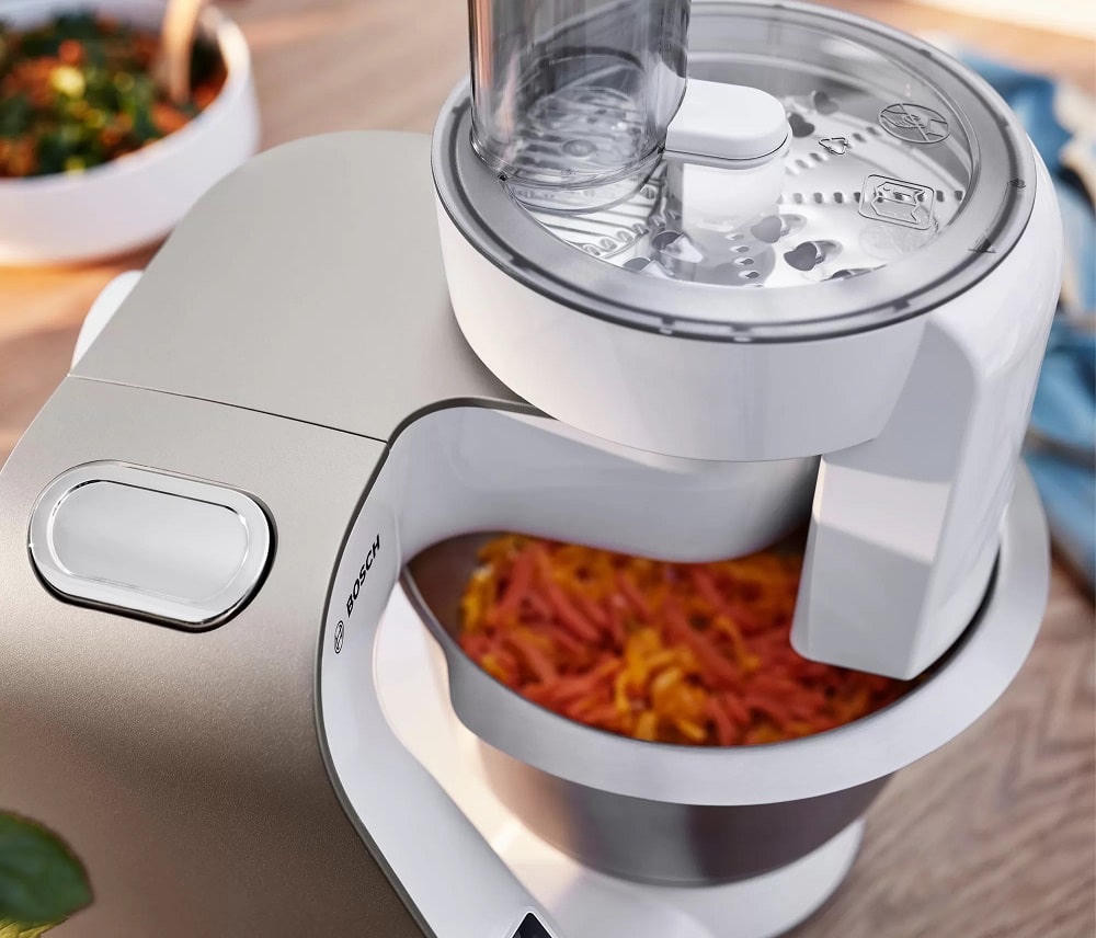 Кухонный комбайн Bosch MUM5XW40 — многофункциональная модель, которая соответствует самым высоким стандартам в кулинарии и выпечке. рычага EasyArmLift можно легко и быстро менять насадки. 7 скоростных режимов позволят настроить мощность работы прибора под ваши нужды, а удобное кнопочное управление и цифровой дисплей значительно упрощают этот процесс.