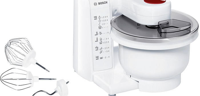 Кухонный комбайн Bosch MUMP1000 оснащен большой пластиковой чашей объемом 3.9 л (позволяет замешивать до 2 кг теста), венчиком для взбивания, насадкой для взбивания жидкого теста и крюком для замешивания крутого текста. Все принадлежности легко очищаются, а также их можно мыть в посудомоечной машине. Прибор можно дополнительно укомплектовать аксессуарами, расширив функциональность и возможности.