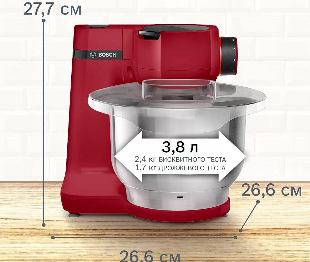 Кухонный комбайн Bosch MUMS2ER01 станет вашим надежным помощником на кухне и сделает приготовление пищи простым и легким. Его чаша выполнена из нержавеющей стали, которая отличается невероятной прочностью, гигиеничностью и не боится постоянного контакта с водой. Вместимость ее рассчитана на 2,4 кг обычного и 1,7 кг дрожжевого теста, поэтому даже большие объемы можно будет приготовить без труда. Мощность мотора составляет 700 Вт, что обеспечивает высокую скорость вращения и эффективность смешивания.