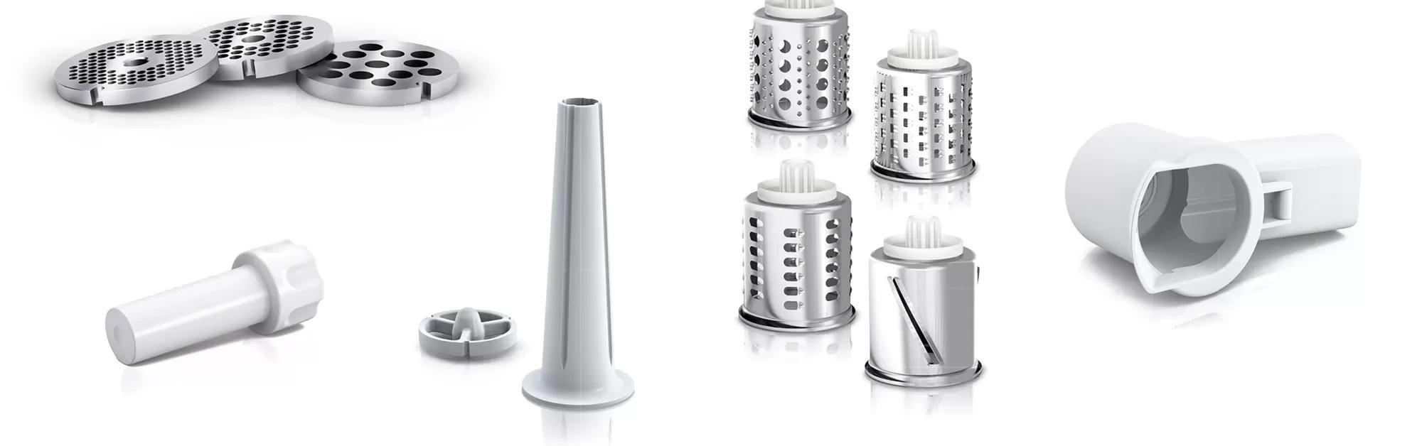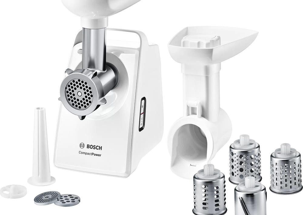 Мясорубка Bosch MFW3X14W оснащена четырьмя насадками и четырьмя барабанами, включая три терки и одну шинковку, что делает ее универсальным помощником на кухне. Нож с двусторонней заточкой обеспечивает качественное и быстрое измельчение продуктов. Для любителей домашней колбасы предусмотрена специальная насадка, которая позволит легко приготовить это блюдо в домашних условиях.