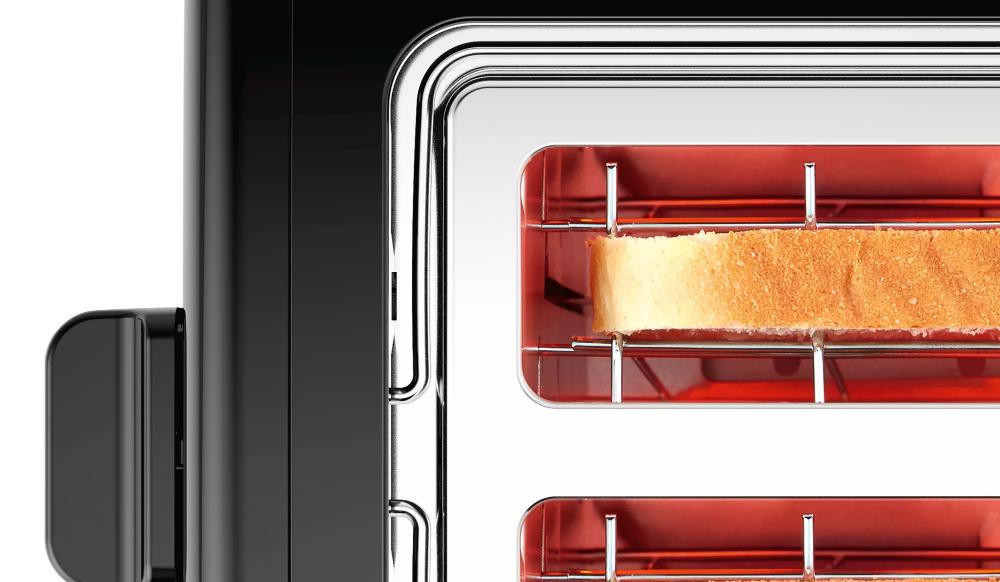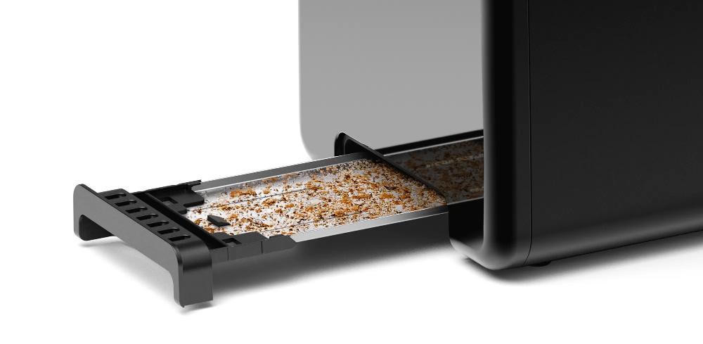 Тостер Bosch TAT 3P423 выталкивает хлеб так далеко, что с легкостью можно достать самые маленькие кусочки и не обжечься. Легко выдвинуть лоток и очистить тостер от крошек. Хлеб автоматически центрируется и обеспечивает равномерное поджаривание.