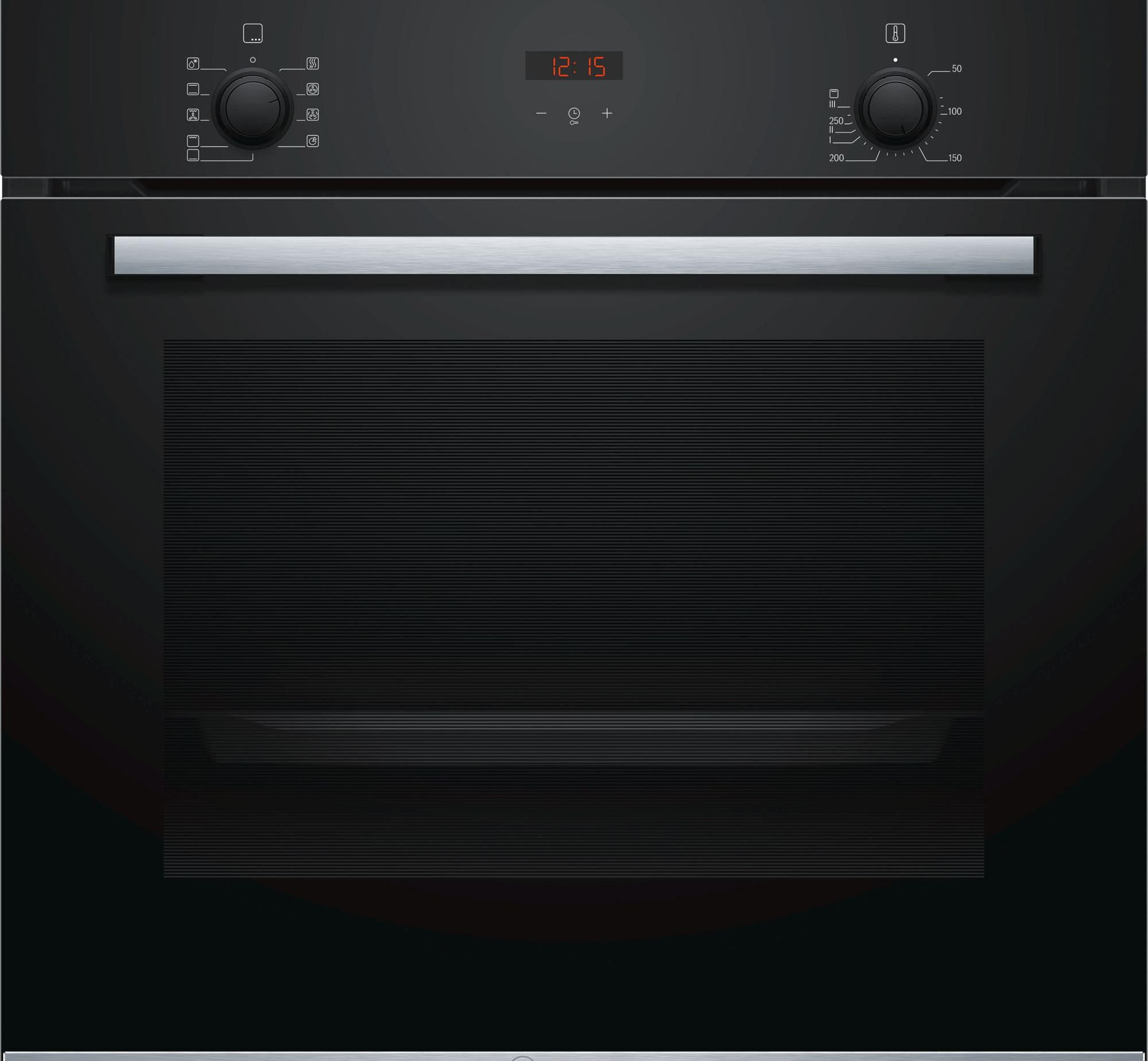 На панели управления расположены часы, которые при помощи сенсора переводятся в режим таймера. Ими также можно задать время приготовления блюда или время окончания готовки. Регулятор температуры позволяет установить степень нагрева от 50 до 275 _C. Бош HBF234EB0R включает в себя восемь режимов нагрева. В их число входит конвекция, позволяющая использовать горячий воздух в щадящем режиме. Это так называемый «умный» вид нагрева, используемый для приготовления мяса и рыбы. С его помощью прекрасно получается выпечка из дрожжевого теста, бисквиты и пирожные. Доступно также размораживание продуктов.