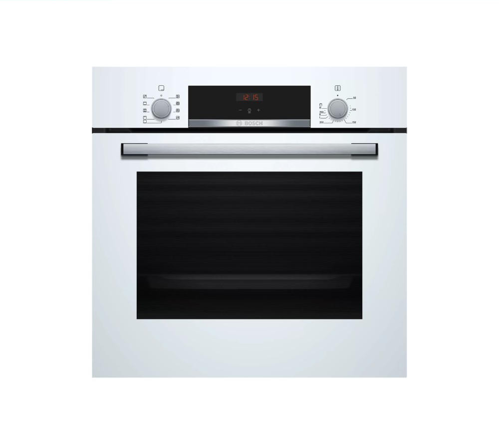 Духовой шкаф Bosch HBF534EW0Q из серии Serie | 4 — это удачное сочетание нейтрального дизайна и продуманной функциональности. Его светлый корпус с акцентами из нержавеющей стали выглядит свежо и современно, легко вписываясь в интерьеры любого стиля — от скандинавского минимализма до тёплой классики. Такое решение не только подчёркивает эстетику кухни, но и создаёт ощущение лёгкости и уюта.